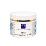 Vata nachtcrème bestaat uit ingrediënten die speciaal geschikt zijn om de huid gedurende de nacht te voeden en te revitaliseren. Omdat een Vata huid vaak neigt tot droogheid, draagt deze nachtcrème bij aan een optimale vochtbalans.Dankzij de voedende bestanddelen voelt de huid snel weer soepel en glad aan. Voor de dagelijkse verzorging van de droge huid, maar ook geschikt wanneer een normale huid wat droog en strak aanvoelt. De crème maakt een schrale, droge huid snel weer zacht en soepel. De crème bevat oliën die rijk zijn aan vitamine A, D en E. Zeer geschikt voor de wat rijpere huid en voor personen die veel stressmomenten kennen.